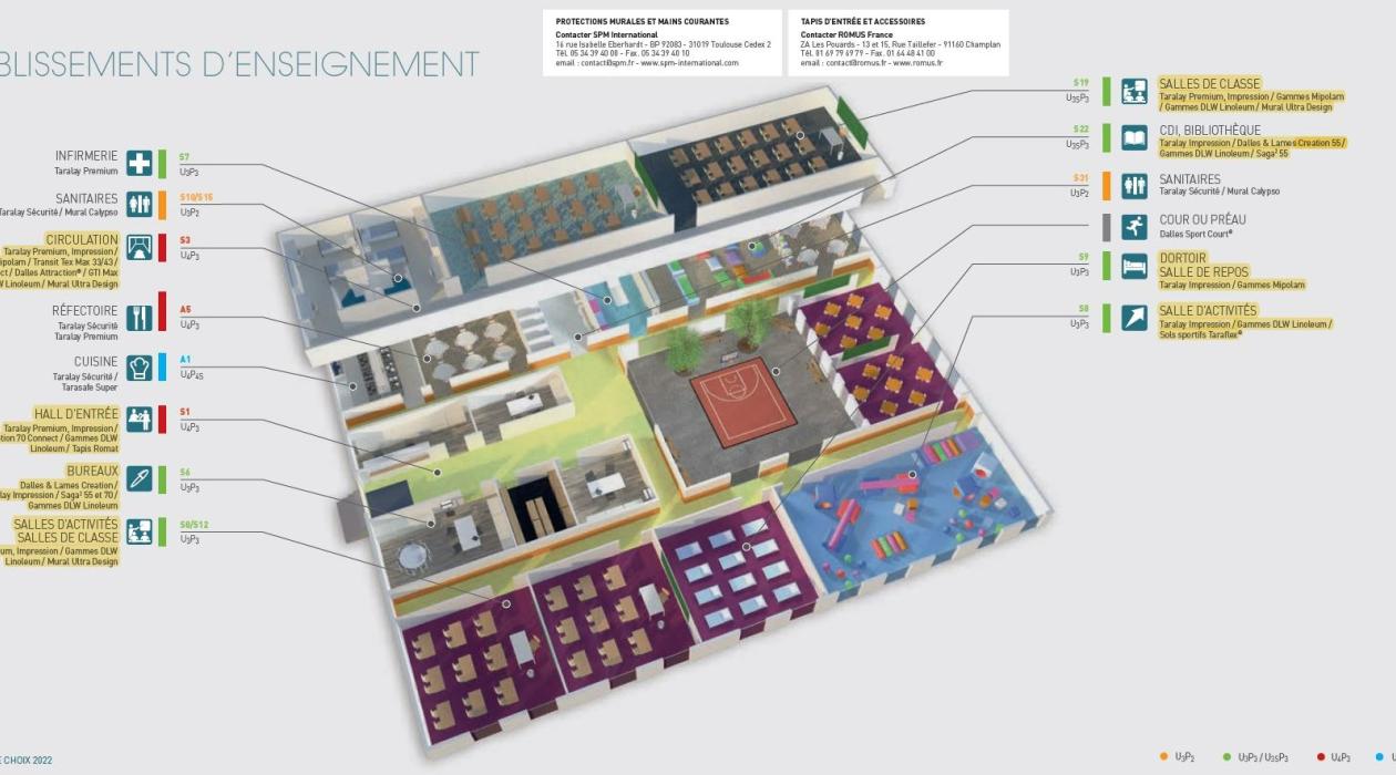 • A wide range of designs and colors for wall and floor coverings, with one collection in particular that is matched to people with illnesses and the option to customize your flooring thanks to a made-to-order design service.